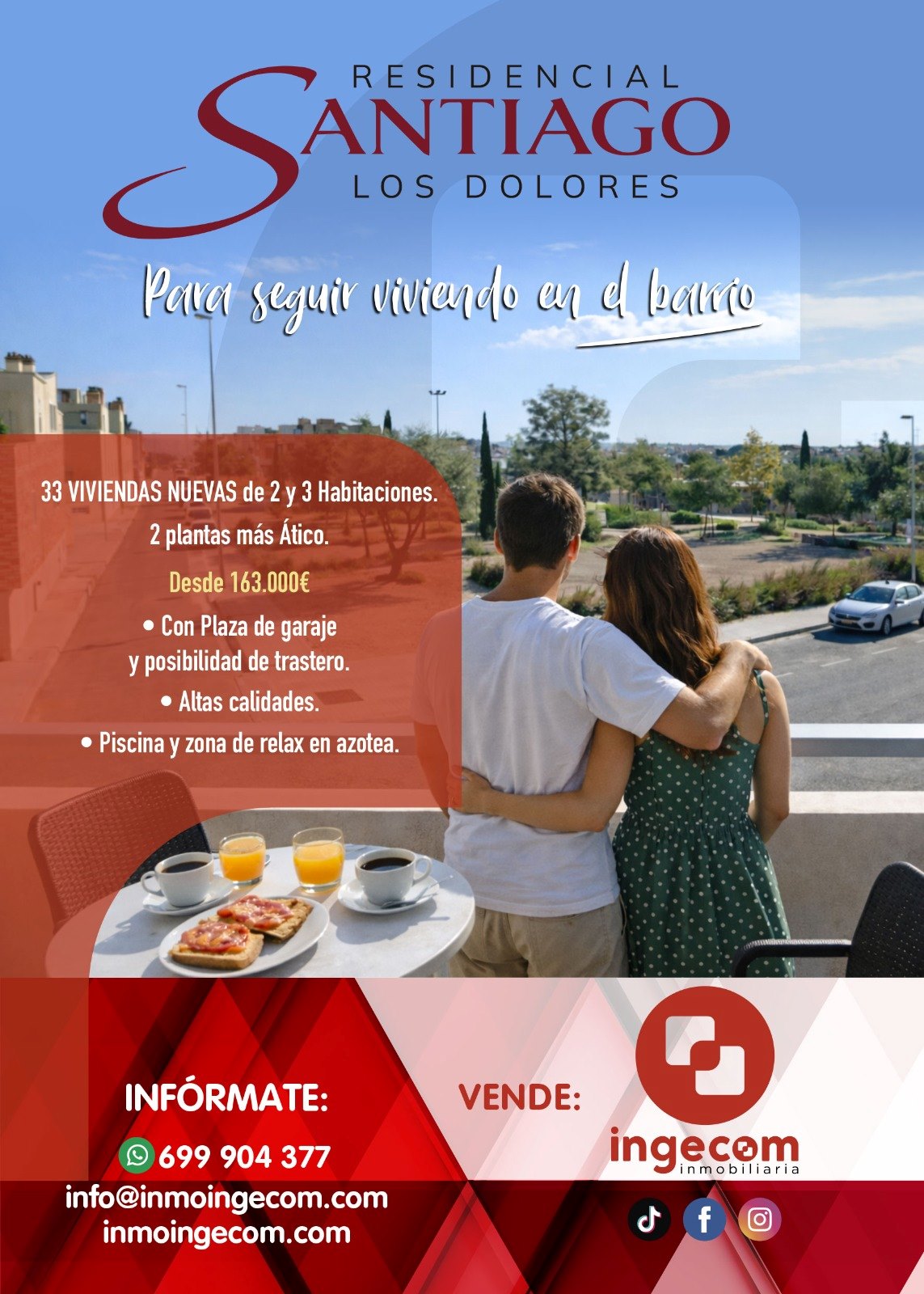 INGECOM INMOBILIARIA ES AGENCIA COMERCIALIZADORA de las 33 viviendas que conforman el Residencial Santiago que la promotora EAP ya ha empezado a construir en el barrio de Los Dolores, ubicado entre las Calle Pirineo y Calle San Pedro, muy próximas al Pabellón de Deportes de Los Dolores.